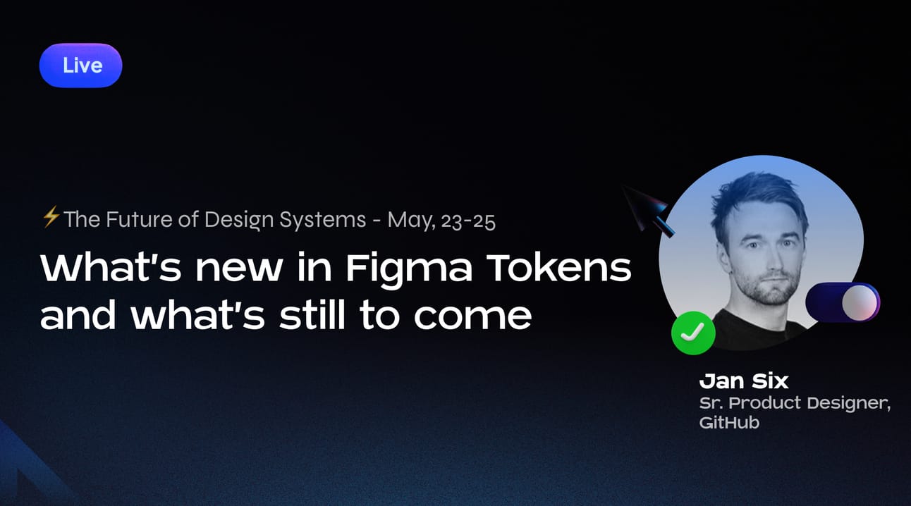 Learn how to create and apply Design Tokens in Figma. With Figma Tokens you will be able to easily customize and maintain your Design System and create Themes (e.g Light & Dark Themes) within minutes. Live hands-on workshop designing token-based design systems in Figma utilizing the plugin "Figma Tokens". 🗓 Date: May, 22nd 2022⏰ Time: 4PM - 8PM CET ⏱Duration: 4 hours🙋🏽♂️Workshop facilitator: Jan Six, Creator of Figma Tokens Plugin & Sr. Product Designer at GitHub